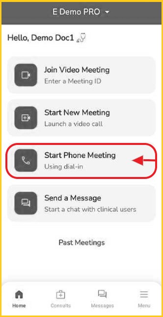 Step 1 - On the 'Home' screen, click 'Start a Phone Meeting'.