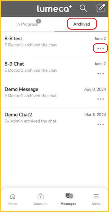 Archived - Messages you were a part of that are archived. Click onto the message to view it or click the '3 dots' for options.