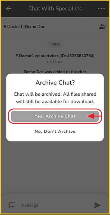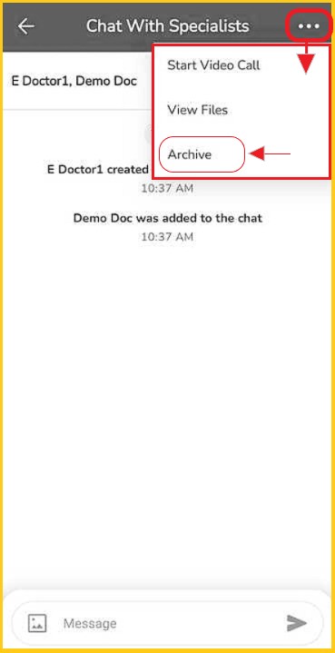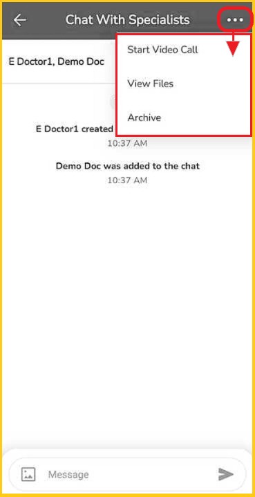 - 3 Dots at top of screen - 'Start Video Call', 'View Files' (documents or photos that were uploaded) and 'Archive' (feature for message creator only).