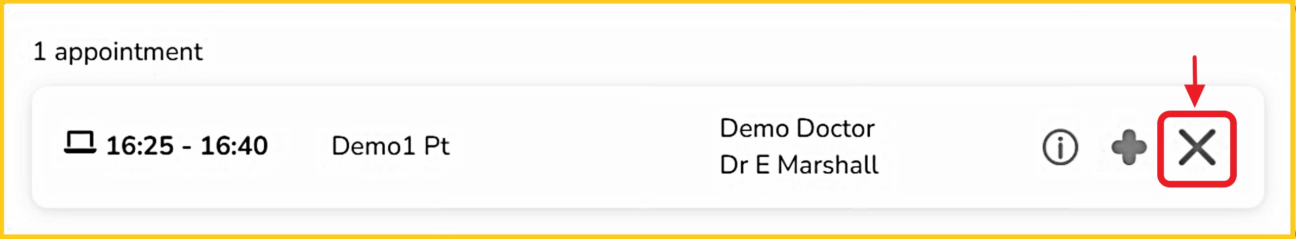 Step 4a - In 'Week View' - after selecting the appointment, click the red 'X'.