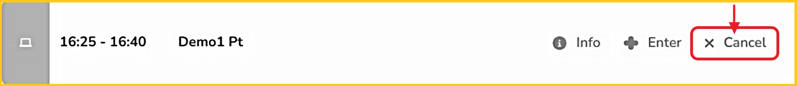 - This option is available only until the scheduled appointment time. Attempts to cancel the consultation after this time will create an error. When that happens, use 'Option 3' below to cancel a patient consultation.