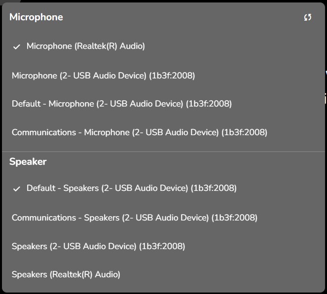 Set/change your system microphone or speaker (system, Bluetooth or detachable)