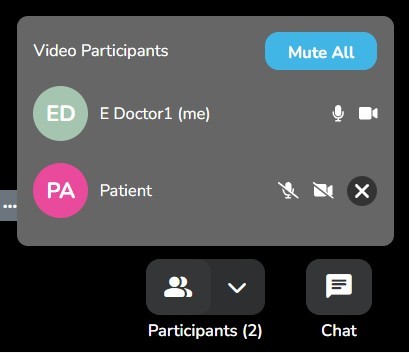 End Call for All - ends the video chat completely. Only avail to the host or participants who are part of the host's clinic care team.