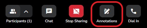 - Annotations - can be added to the shared screen while it is displayed. Click to highlight specific areas on your shared screen