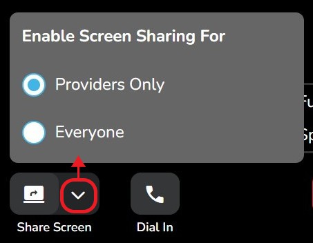 Step 2 - Click either option to enable screen sharing for 'Providers Only' or 'Everyone'.