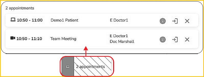 When appointments overlap, the time slot displays the number of overlapping appointments in a hashed box.