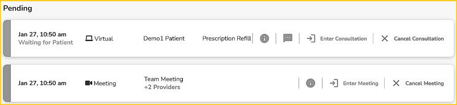 Decline Video Meeting/Consultation – will remove the appointment from their schedule only and will not change the scheduled appointment or the schedules of other invited providers.