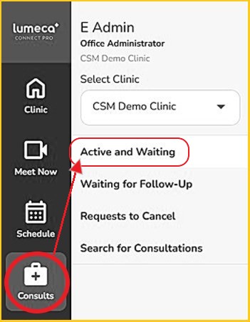 CONSULTATIONS > 'ACTIVE & WAITING’ SCREEN