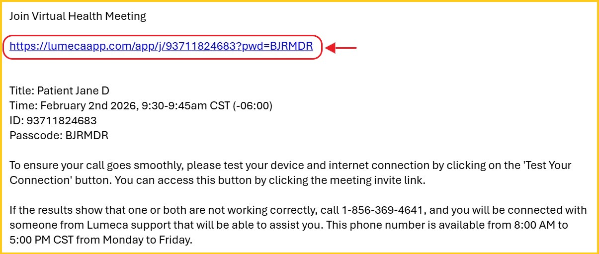 The patient or other invited participants may rejoin by clicking the same hyperlink in the email that invited them to the meeting: |