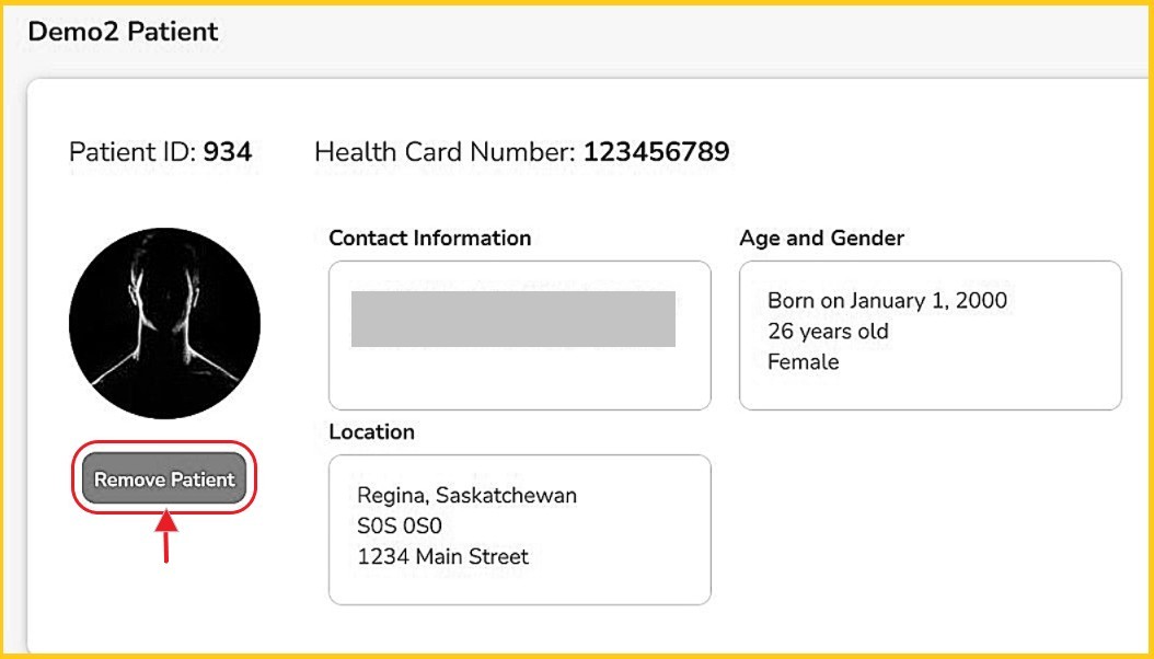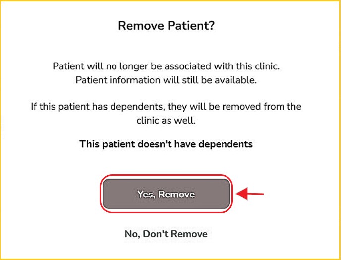 Step 2 - On the Patient Information screen, click 'Remove Patient'.