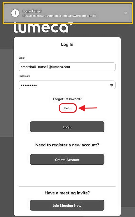 - Ensure you are at the correct 'Lumeca Health' Login screen: