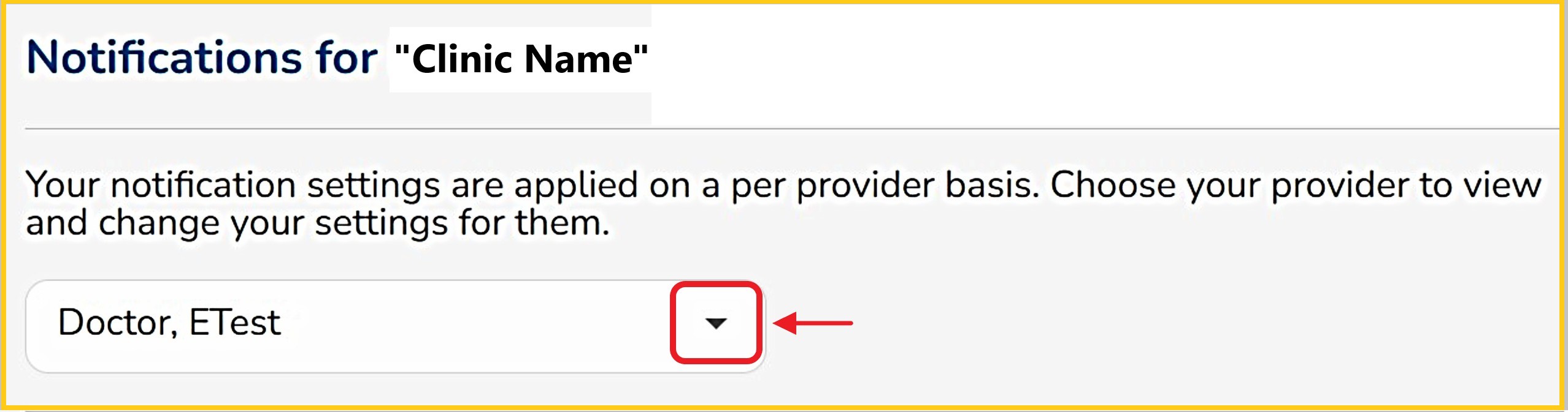 Step 2 - Clinic admins configure notifications for the providers they want to receive alerts for, regardless of whether they modified the appointment or another admin did so.