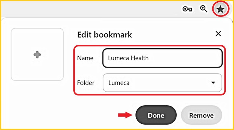 Name the bookmark, assign it to a Folder or place on the Bookmarks Bar, then click 'Done/Save'.