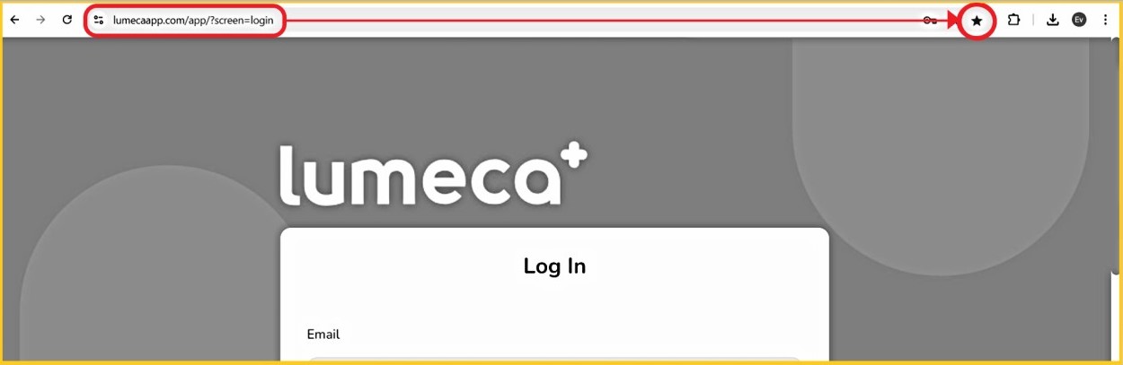 Depending on where you placed your bookmark, access the bookmarked Lumeca Login screen from: