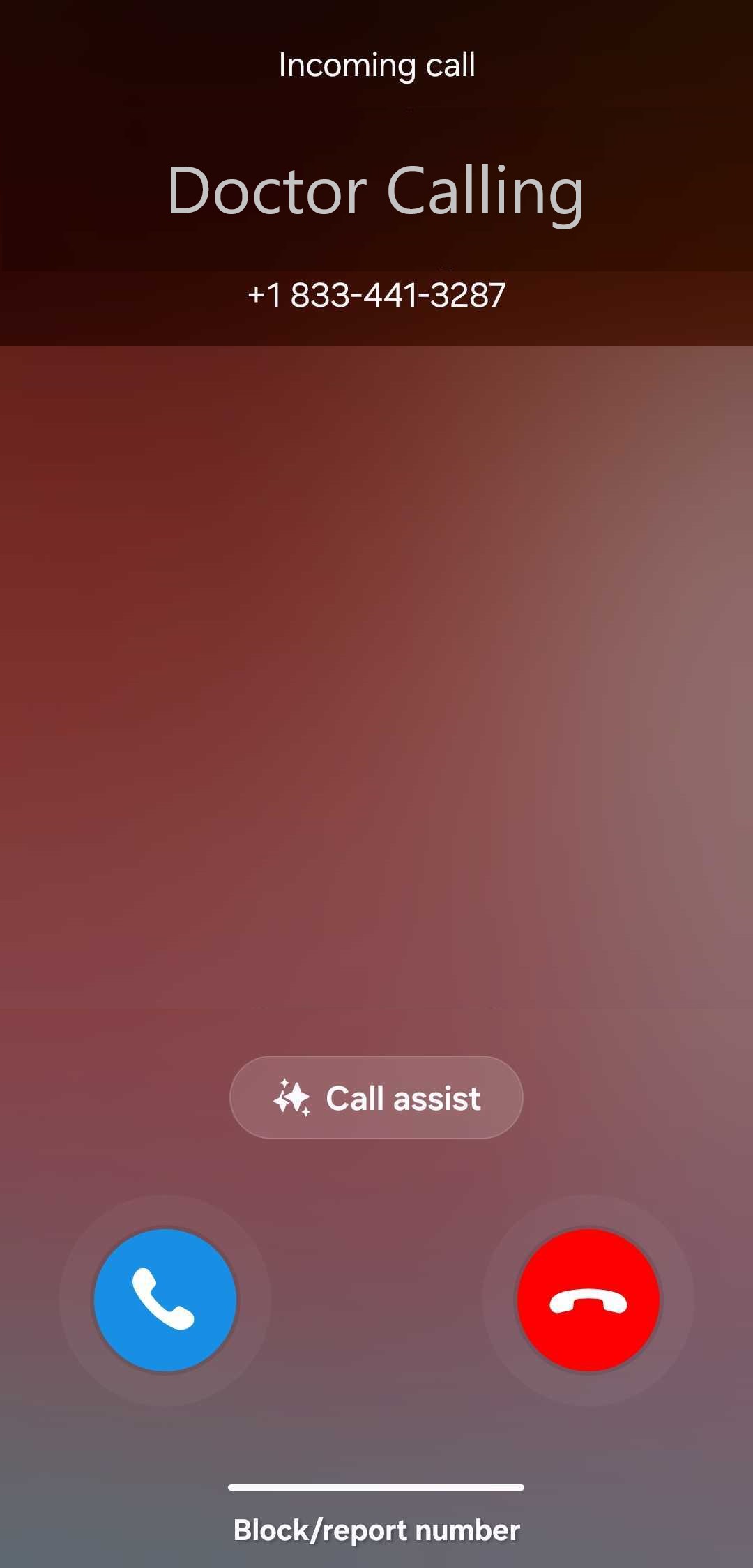 The number displayed will either be a 1-833 number or the healthcare provider's clinic.