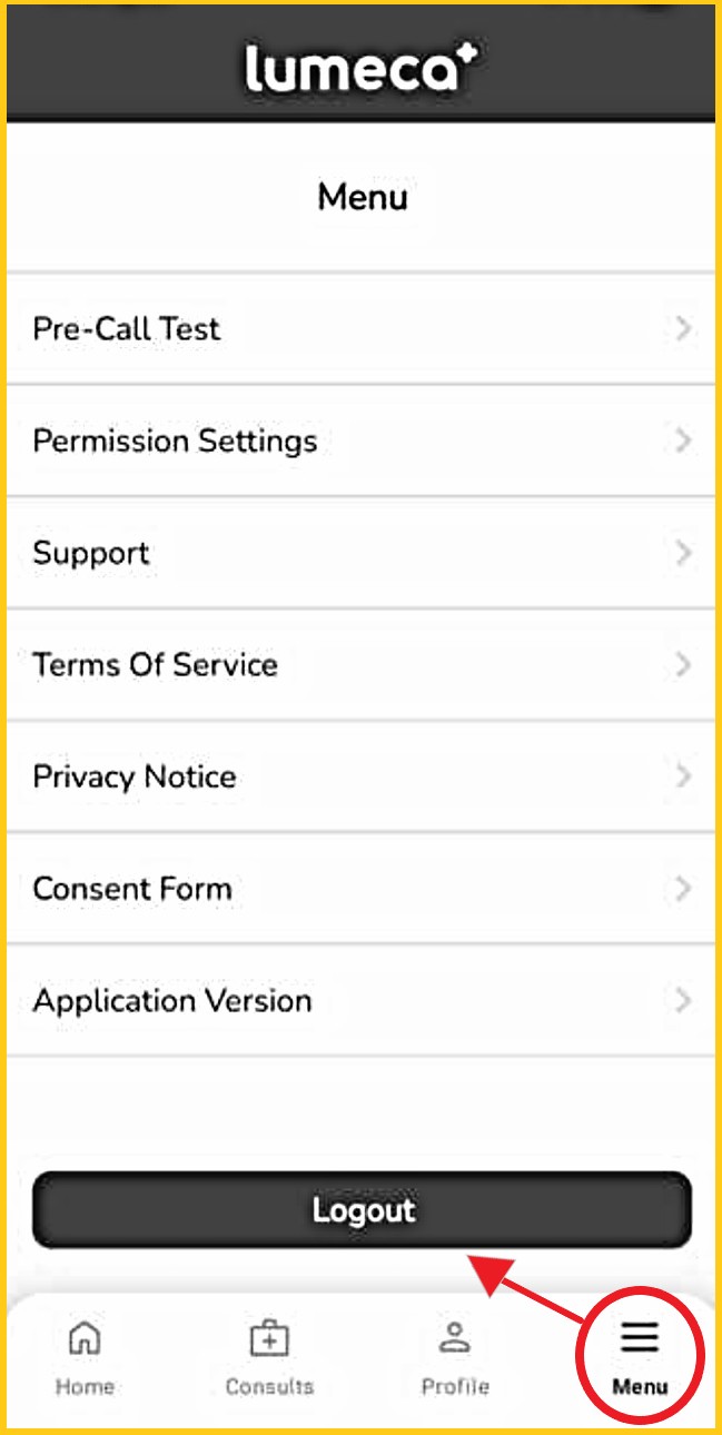 It is very important you log out of Lumeca Health, for security and privacy of your health information, otherwise your information may still be accessible by others. |