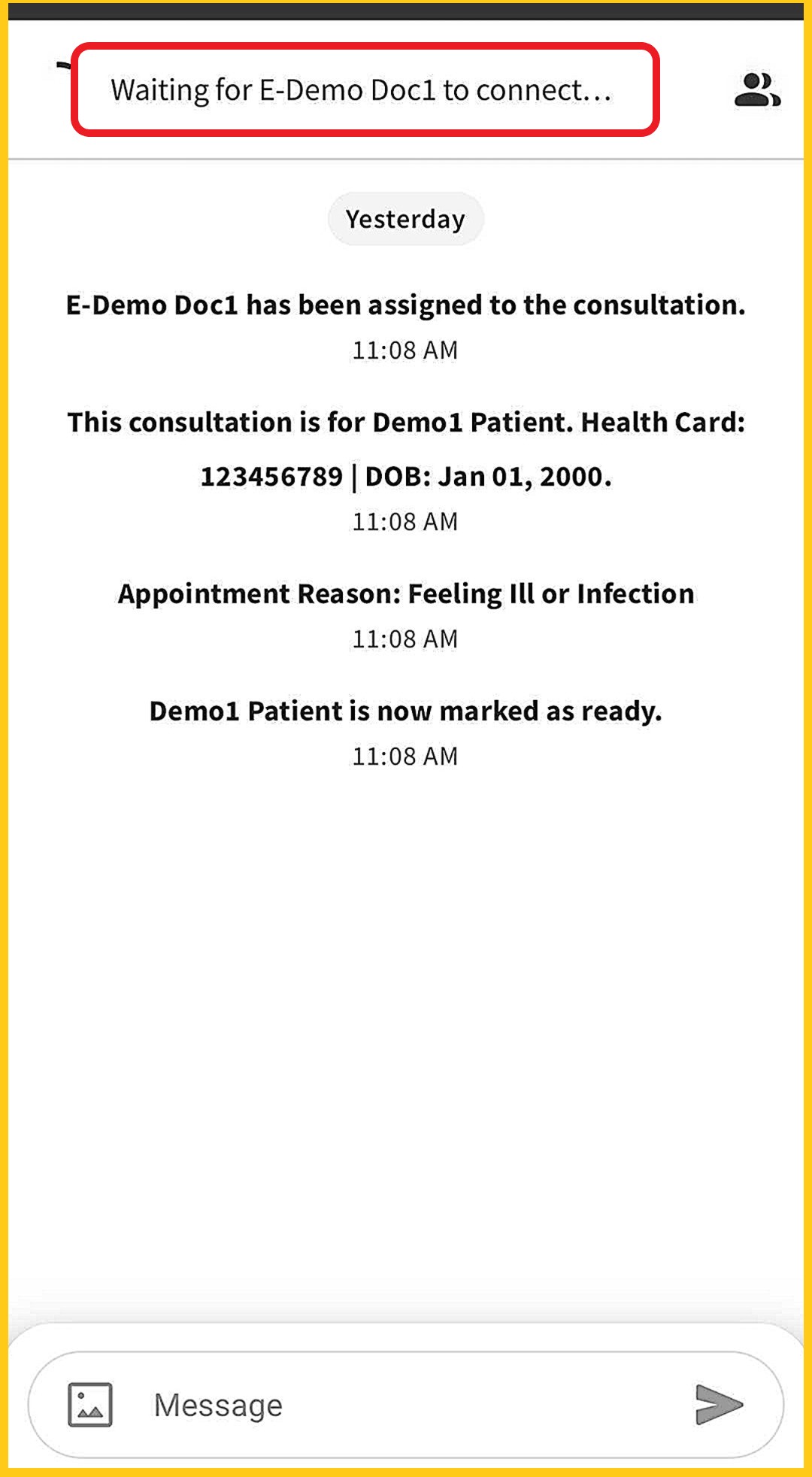 Waiting in the consultation chat area for your virtual appointment is similar to waiting in the clinic’s physical exam room for an in-person appointment. Often there will be a wait before the doctor arrives.